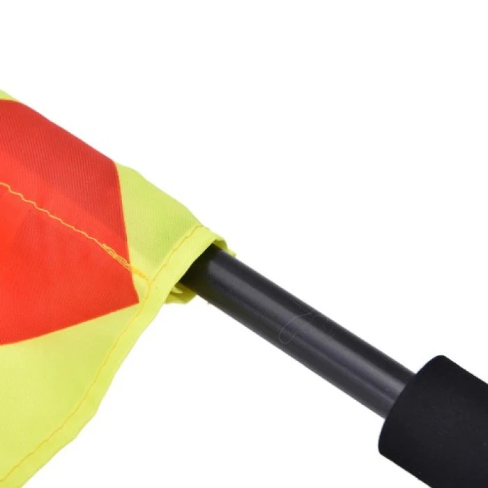 ПРАКТИЧЕН КОМПЛЕКТ ЗА СЪДИЙСТВО Съдийски флагове с калъф за лесно пренасяне. Това е удобен комплект за футболни съдии, треньори и спортни клубове, които търсят ясно видими флагове за тренировки, мачове и различни спортни събития. Комбинацията от жълт и оранжев цвят помага сигналите да се виждат по-лесно от по-голямо разстояние и при различни условия на терена.
