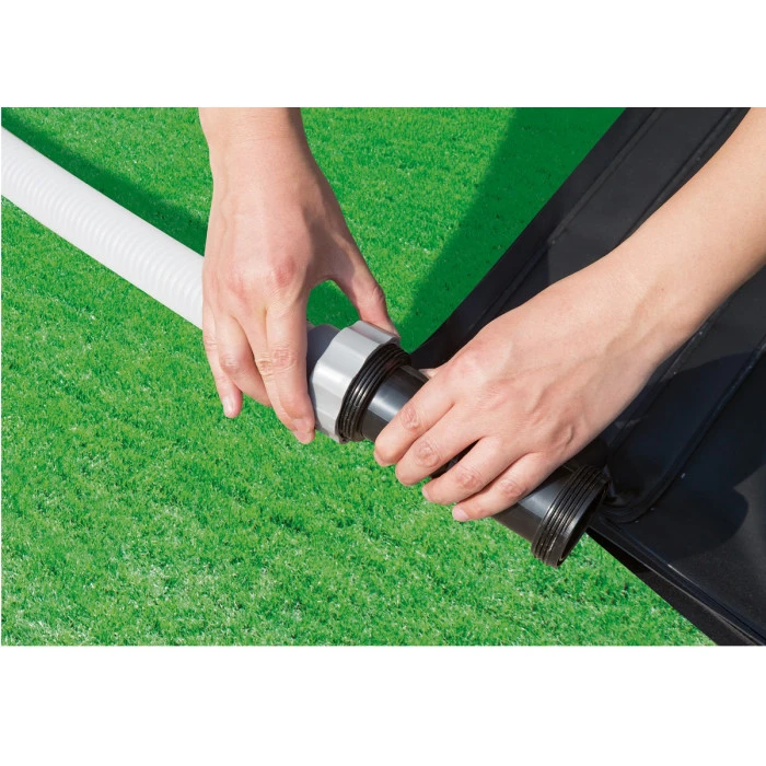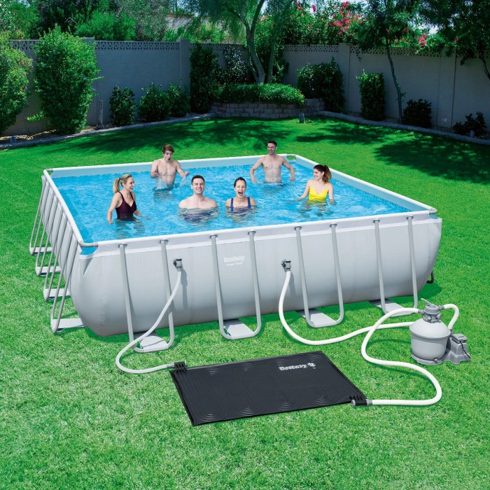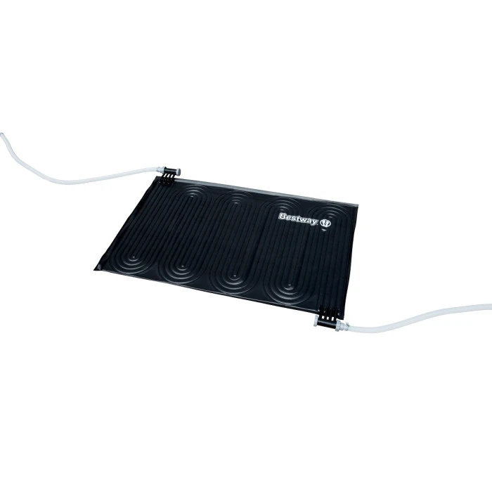 Абсорбира слънчевата енергия и я предава на водата, протичаща през подложката. - Тип отопление: соларна подложка - Размери: 1,1 х 1,71м - Обща отоплителна площ: 1,46 м2 - Съвместим с 7.570 l/h пясъчна филтрация - Съвместим с маркучи 32 и 38 мм - Съвместим с всички наземни басейни с връзка към филтрация -В зависимост от метеорологичните условия и размера на басейна може да повиши температурата на водата с приблизително 3-5 °C - Материал: Hi-Tech 0,9 mm PVC Соларна нагревателна подложка абсорбира слънчевата енергия и я предава на водата, протичаща през подложката