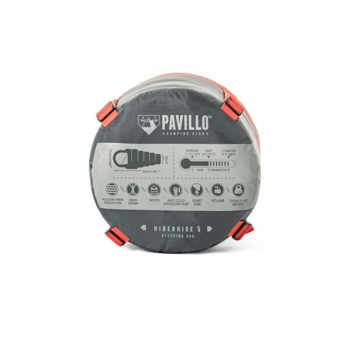 Спален чувал с комфортна температура от +3 до +8C, Hiberhide 5. - размер: 230 х 80 х 60 см - горен материал: Полиестер 210T Ripstop - пълнеж: кухи влакна 250 гр/м2 - вътрешен материал: Polyester Pongee 190T - затваряне с цип - комфортни температури от +3 до +8C - екстремна температура -11 oC - тегло 1 кг