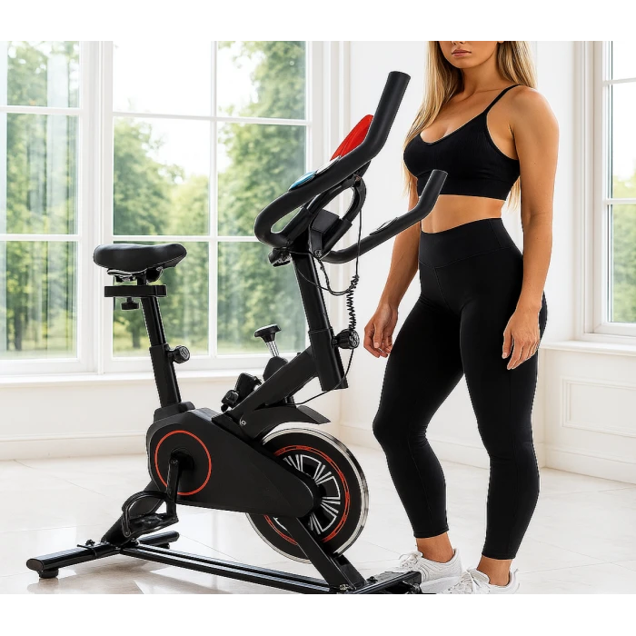 Открийте удоволствието от домашния фитнес със спининг байк Bodyflex. Този модел е създаден, за да ви осигури интензивна аеробна тренировка, без да напускате комфорта на хола си. Сърцето на уреда е 9-килограмовият маховик, който в комбинация с висококачествената ремъчна система (Belt Drive), гарантира изключително плавно и тихо въртене. Това го прави перфектен избор за сутрешни или вечерни сесии, без да пречите на останалите членове на семейството.