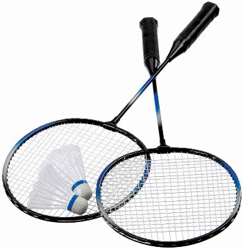 Комплект за бадминтон за 2 играчи. Подходящ за игра от двама души. Ракетите са с алуминиева глав..