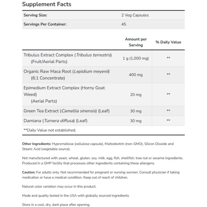 Повишава енергията по време на тренировки, също така засилва либидото и потентността. Свойс..