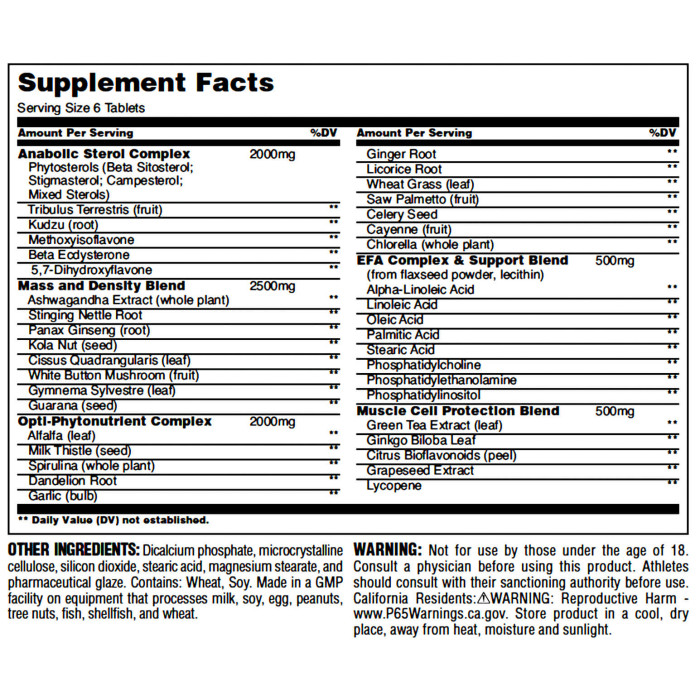 Universal Natural Sterol Complex също съдържа хранителни преподставки, създадени за покачване на общата му ефективност, включвайки незаменими мастни киселини, електролити, нуклеозиди, метаболитни ензими, пречистватели и други.* Обширната формула използвана в Universal Natural Sterol Complex може да увеличи способноста на тялото Ви да изгражда мускулна маса и плътност, да подобрява общото представяне при тренировки и възстановяване, да подобрява енергийните нива и сила. Когато сте готови за същинските добавки – използвайте Universal Natural Sterol Complex*.
