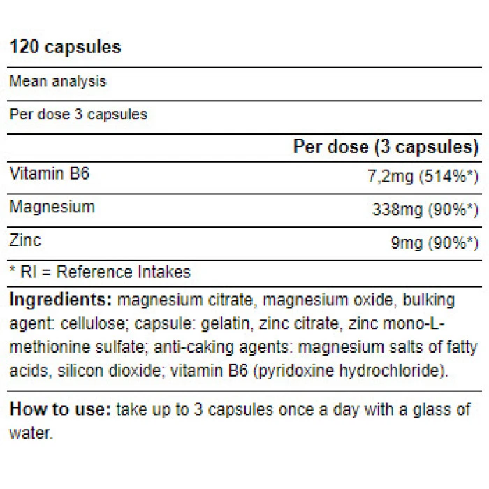 Разфасовки: 120 капсули. ZMA PRO от Yamamoto е хранителна добавка с изразени ефекти върху общото здравословно състояние. Формулата съдържа триото цинк, магнезий и витамин B6. Изключително потентна комбинация, отразяваща се благотворно върху силата, издръжливостта, енергията и настроението. Магнезият участва в метаболизма на енергия, отговаря за мускулните контракции, настроението и релаксира нервната система. Цинкът е противовъзпалителен агент с изразени адаптогенни способности. Пиридоксинът облекчава симптомите на стреса и помага за поддържане на доброто настроение.