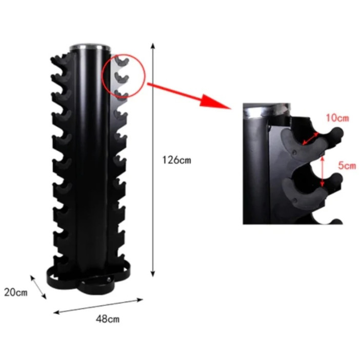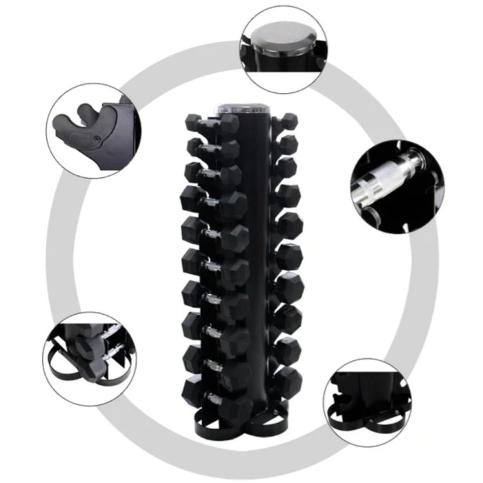 ПОДХОДЯЩА ЗА ДОМАШЕН ФИТНЕС И ЗАЛА Когато дъмбелите са подредени вертикално и всеки чифт е на определено място, достъпът по време на тренировка е по-лесен, а пространството остава по-чисто и безопасно. Стойката е подходяща за комплект дъмбели от 1 до 10 кг и е добро решение за хора, които търсят компактна стойка за дъмбели, по-добра организация и по-професионално подредена тренировъчна зона.