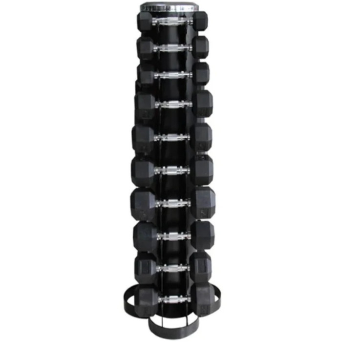 КОМПАКТНО СЪХРАНЕНИЕ С ПОВЕЧЕ РЕД Тази стойка за дъмбели тип кула е направена за подредба на 10 чифта дъмбели в минимално пространство. Вертикалната конструкция е особено практична, когато искаш да държиш свободните тежести на едно място, без да заемаш излишна площ в тренировъчната зона. Това я прави много удачен избор за домашен фитнес, студио или по-компактна тренировъчна зала.