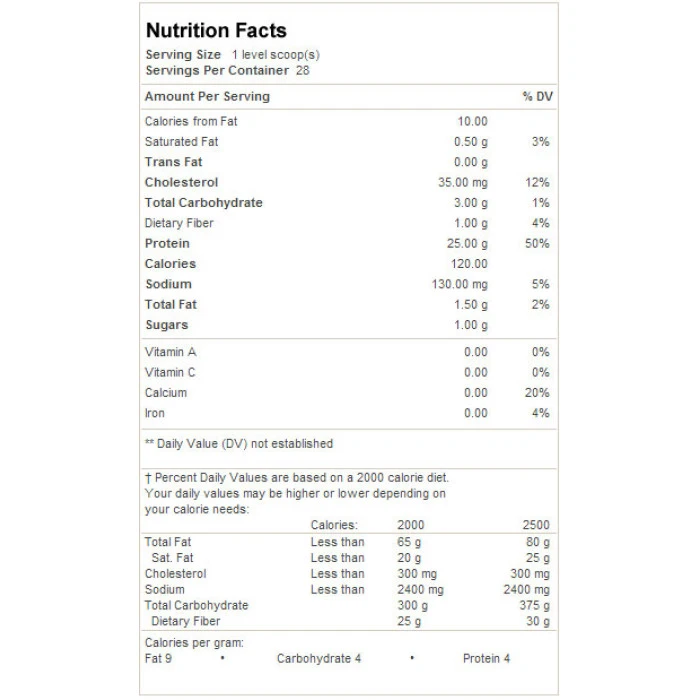 Суроватъчен протеин, който снабдява мускулите ви с 25 грама висококачествен протеин и 6.1 грама BCAA..