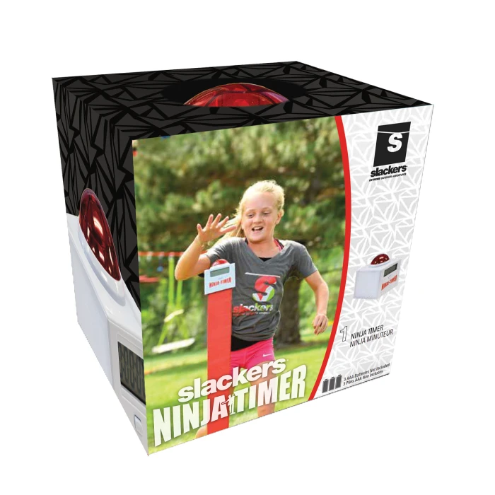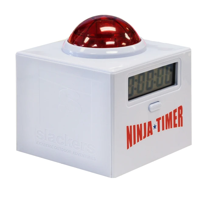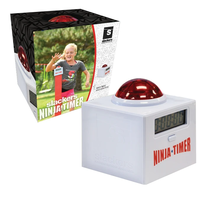 Новият Ninja Timer ще показва най-доброто време на цифровия дисплей при всяко натискане на бутона. Следователно е подходящо допълнение не само към всички курсове с препятствия Ninja Line, но и към други дейности, където времето играе важна роля. Таймерът се монтира лесно на стълб с размери 10 х 10 см например и се захранва от 3 батерии AAA. Освен че отброява времето, таймерът издава и звуков сигнал при натискане.