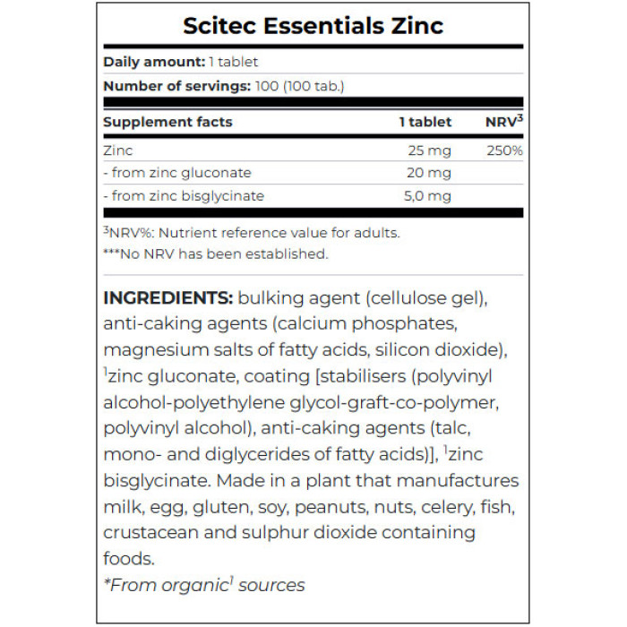 Поръчай сега от Спортен склад БГ SCITEC Zinc 25 mg. / 100 Tabs. с експресна доставка!