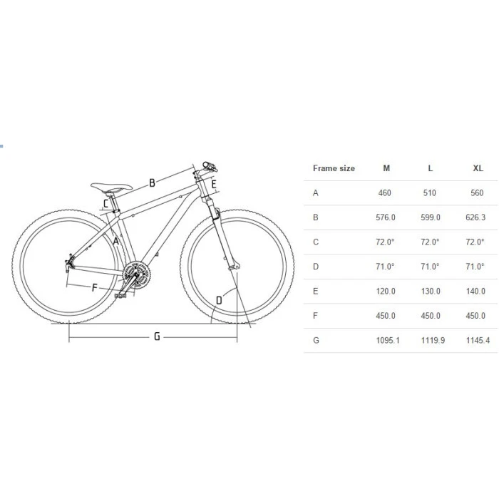 Алуминиева рамка 460 мм, 510 мм или 560 мм, V-brake спирачки, 21 скорости.