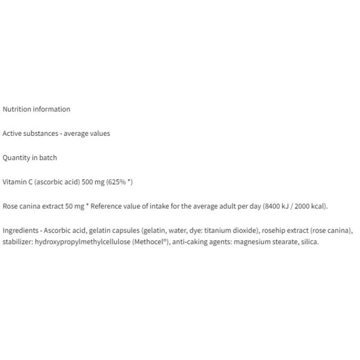 AMIX GreenDay Vitamin C 500 mg with RoseHip / 60 Caps е хранителна добавка, съдържаща висока доза Витамин С, която стимулира имунната система, подпомага цялостното здраве и осигурява на тялото мощна антиоксидантна защита. AMIX GreenDay Vitamin C 500 mg with RoseHip / 60 Caps има мощни противовъзпалителни свойства и може да се използва превантивно срещу различни видове грип и настинки. Освен това повишава издръжливостта и намалява умората. AMIX GreenDay Vitamin C 500 mg with RoseHip / 60 Caps намалява признаците на стареене и подпомага тялото в борбата със свободните радикали. Освен това подобрява състоянието на кожата, косата и ноктите. Не на последно място, AMIX GreenDay Vitamin C 500 mg with RoseHip / 60 Caps влияе положително на сърдечно-съдовата система, кръвоносните съдове и мозъка. Една Доза:1 капсула Начин на приемане: Приемайте по 1 капсула, веднъж дневно Дози в опаковка: 60 Вземи още сега с гарантирано качество от Спортен склад БГ! Съставки: Аскорбинова киселина, глюкозни полимери, желатинова капсула (направена от чист желатин, вода, багрило: титанов диоксид), екстракт от шипка, стабилизатор: хидроксипропилметилцелулоза Methocel®; противослепващи агенти: магнезиев стеарат, силициев диоксид Забележки: Пазете далеч от деца. Съхранявайте на сухо и хладно място. Да не се използва като заместител на разнообразното хранене. Поръчай сега от Спортен склад БГ AMIX GreenDay Vitamin C 500 mg with RoseHip / 60 Caps с експресна доставка!