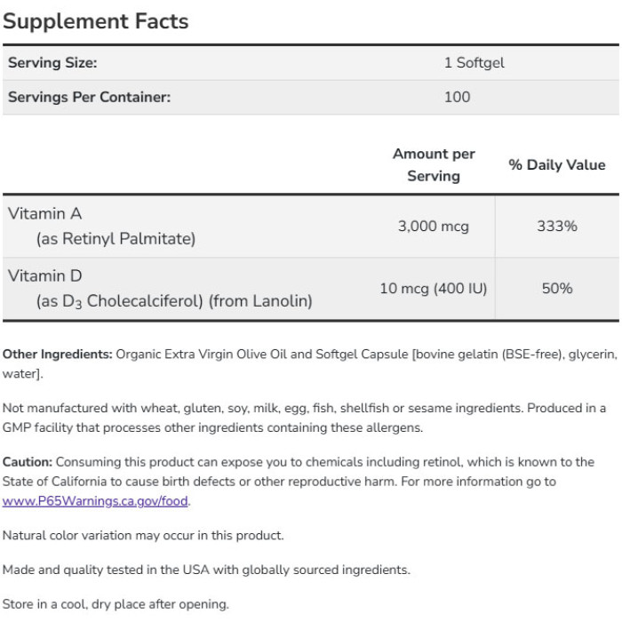 Витамин А е от съществено значение за поддържане на здрава епителна тъкан. намираща се в очите, кожата, дихателната система, стомашночревнияипикочния тракт. Витамин D стимулира усвояването на калция и неговия пренос до костите.