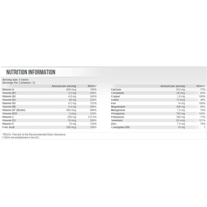 SCITEC Euro Vita-mins е хранителна добавка. Опаковка: 120 таблетки