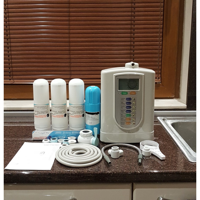 Машина 5 в 1 с функции за йонизиране, алкализиране, обратна осмоза, двойно филтриране или производство на киселинна вода. Всички те могат да се използват самостоятелно или отделно едни от други.