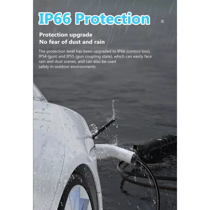 ПОДГОТВЕНА ЗА ВЪНШНИ УСЛОВИЯ И ПО-СИГУРНА РАБОТА IP65 защитата, работният диапазон от -30°C до +55°C и вградените защити срещу пренапрежение, понижено напрежение и прегряване правят станцията подходяща за реална дългосрочна употреба. Вградената ДТЗ тип B с чувствителност за AC и DC е важен детайл, защото дава по-високо ниво на защита при зареждане. За човек, който търси регулируема 3-фазна зарядна станция с Type 2 кабел, Wi-Fi управление и мощност до 22 kW, този модел е много силно решение.